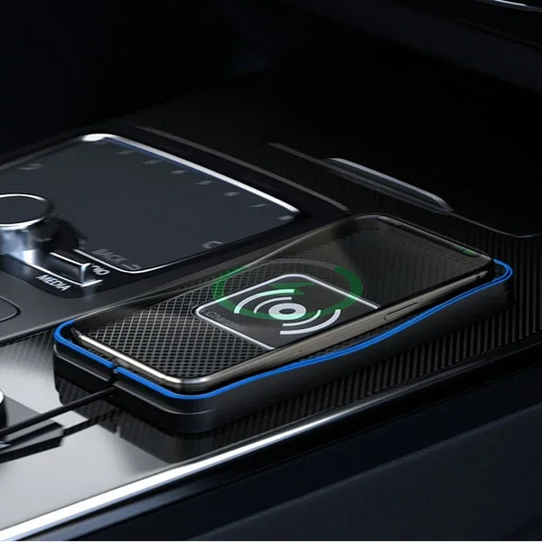 Szybka ładowarka bezprzewodowa 15W do auta – silikonowa podkładka antypoślizgowa